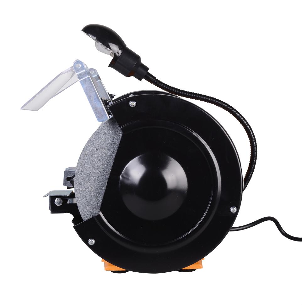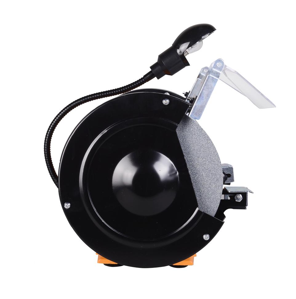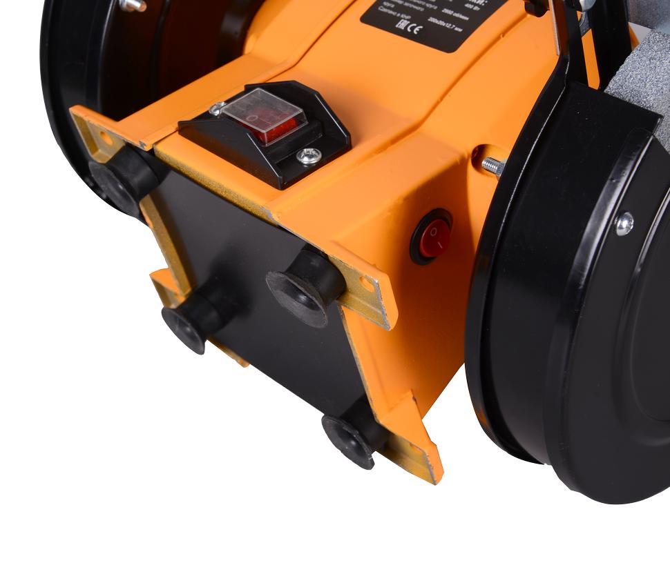 Двигатель асинхронного типа обладает меньшей вибрацией и хорошей частотой вращения 2950 оборотов. На валовой части ротора электродвигателя закреплены шлифовальные круги 200x20 мм (диаметр x толщина). Посадочный диаметр круга составляет 12,7 мм.