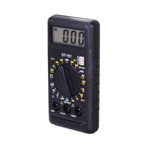 Миниатюрный, износостойкий, 3 1/2 - разрядный мультиметр DT181 предназначен для измерения постоянного и переменного напряжения, постоянного и переменного тока, сопротивления, проверки диодов, транзисторов, звуковой прозвонки.Метод измерений - АЦП двойного интегрирования с автоматической коррекцией нуля, автоматическим определением полярности и индикацией перегрузки. Полная защита от перегрузок. Предназначен для применения в полевых условиях, лабораториях, мастерских и домашнем хозяйстве.
