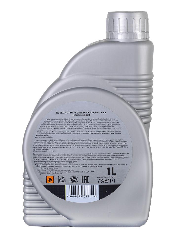 Масло моторное 10W-40 полусинтетическое для четырехтактных двигателей Huter предназначено для бензиновых двигателей. Используется для смазки деталей электрических генераторов, мотоблоков, культиваторов, снегоуборочных агрегатов, мотопомп, газонокосилок, внедорожников, снегоходов, мототехники. Вязкость по классификации SAE имеет показатель 10W-40. Это говорит о всесезонных характеристиках масла и возможности его использования при температуре от -25° до +40°С. Категория МА-2 по стандарту JASO означает высокий коэффициент трения, подходящий для больших нагрузок. Маркировка SL указывает на экологичность материала и его энергосберегающие свойства. Моторное масло применимо для многоклапанных, турбированных силовых агрегатов, работающих на обедненной смеси.