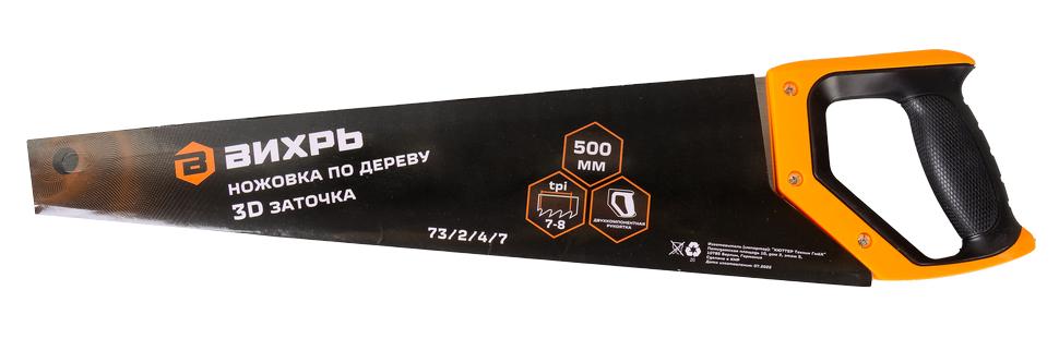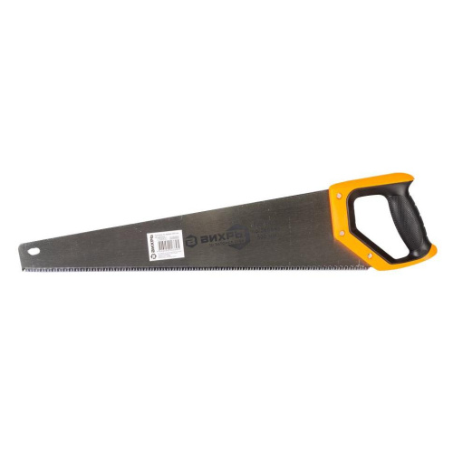 Ножовка ВИХРЬ 500 мм с трехмерной заточкой и двухкомпонентной рукояткой применяется для продольного и поперечного пиления.