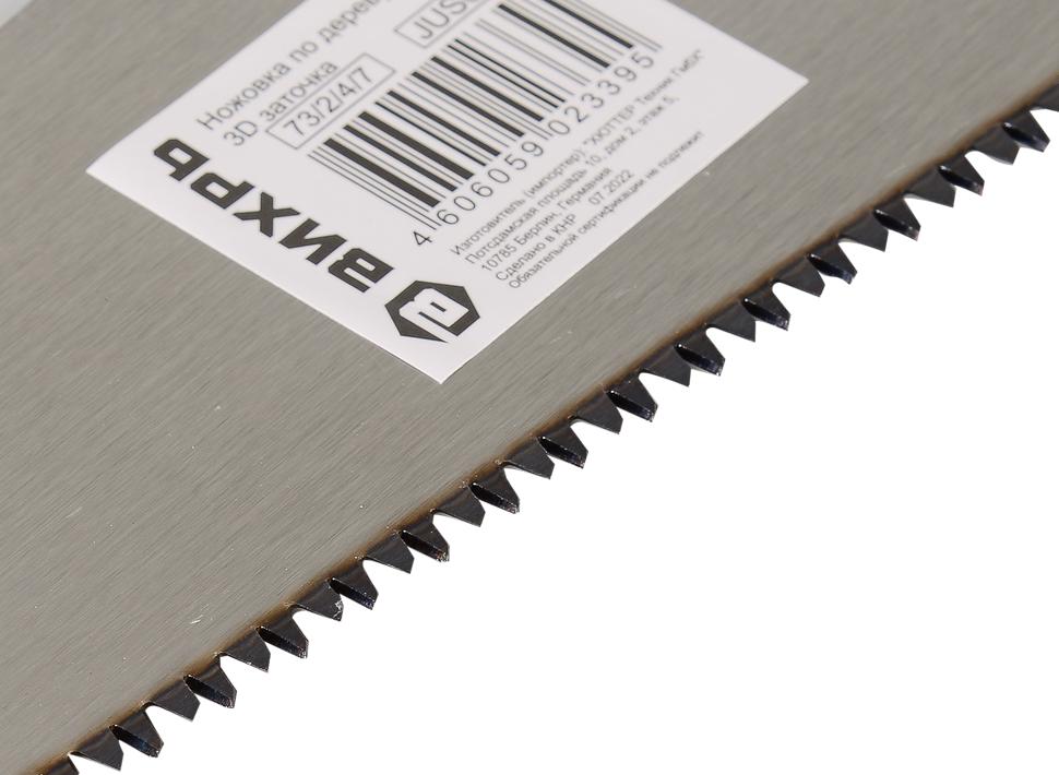 - Ножовка изготовлена из углеродистой стали с твердостью закаленного зуба 46–52 HRС.