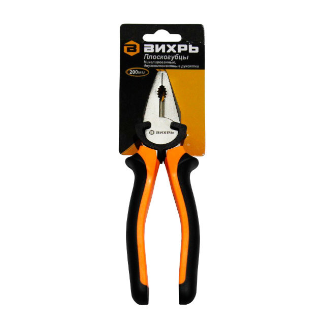 Плоскогубцы (пассатижи), 200мм., никелированные, двухкомпонентные рукоятки, Вихрь. предназначены для широкого спектра монтажных и ремонтных работ. Покрыты никелем, что защищает от коррозии и снижает износ при эксплуатации. Имеют удобные двухкомпонентные рукоятки.